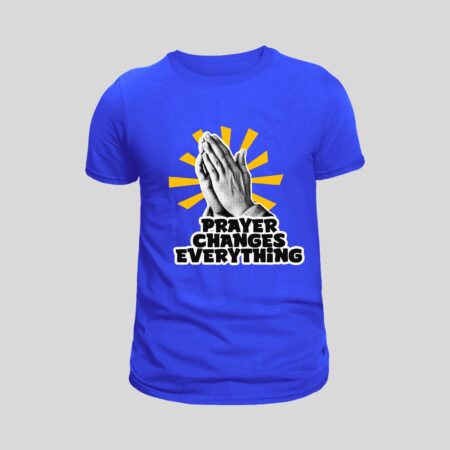 Make a bold declaration of faith with this “Prayer Changes Everything” T-shirt. Designed with powerful praying hands and radiant sunbeams, this shirt is a daily reminder that prayer is the key to breakthroughs, peace, and miracles.